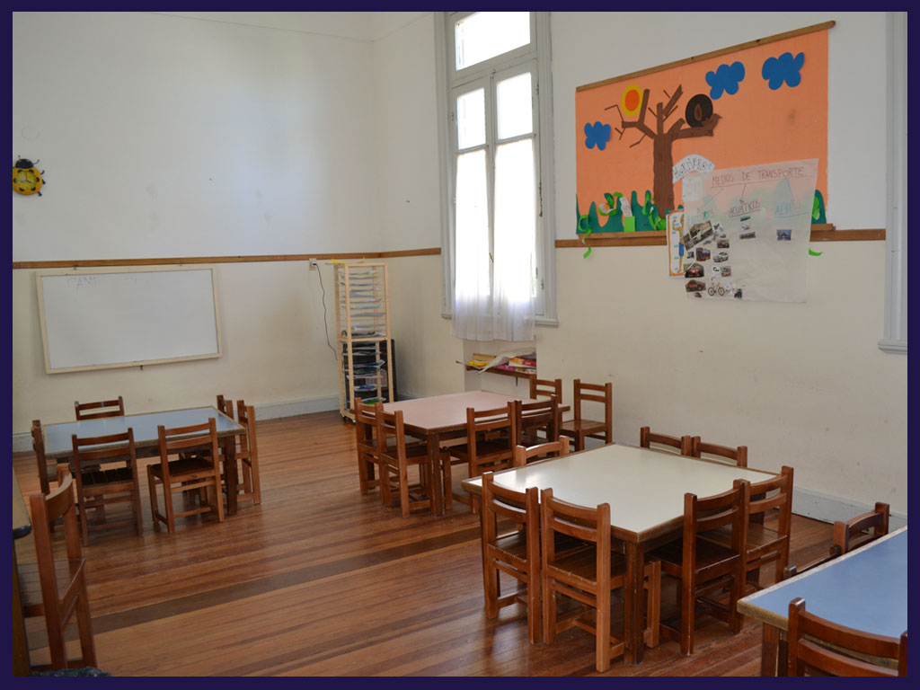 Contamos con amplio, iluminado y hermoso local de importante valor arquitectónico, con una sala central, un patio cerrado, sala de informática, varias baterías de baños y aulas para cada nivel. La casona está rodeada por un hermoso parque, dedicando el fondo como patio de recreo, con juegos para el esparcimiento de los niños y espacios delimitados y adaptados para los más pequeños.
